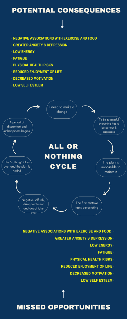 It’s natural to want to apply the same ‘all-in’ strategy to regaining fitness as one would to conquering a professional challenge. After all, it’s this mindset that got things done before, right? But therein lies the trap. When it comes to regaining your health and fitness, an overzealous approach often does more harm than good. Intensive training regimes without ample recovery time, or extreme diets that sap the joy out of eating, are not sustainable in the long term. They can lead to a cycle of burnout that leaves you feeling defeated and demoralized. And perfectionism, usually an ally in high achievers’ pursuits, can be an insidious saboteur when it comes to health and fitness.
