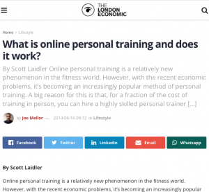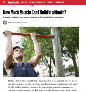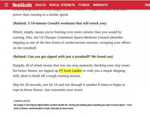 In the print issue of Men’s Fitness, my online personal training service was featured in a round-up of the top 6 online fitness options. I was quoted as being “Best For Quick Results”