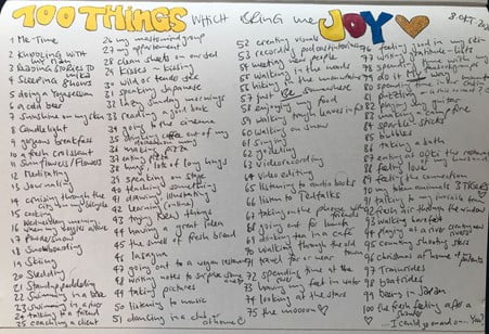 I say all of that to drive home the point that we really need to take steps not to take on unnecessary stress. And also, to have systems and rituals in place to help you manage it. These could be as simple as keeping a list of the things that bring you joy as in the image above.